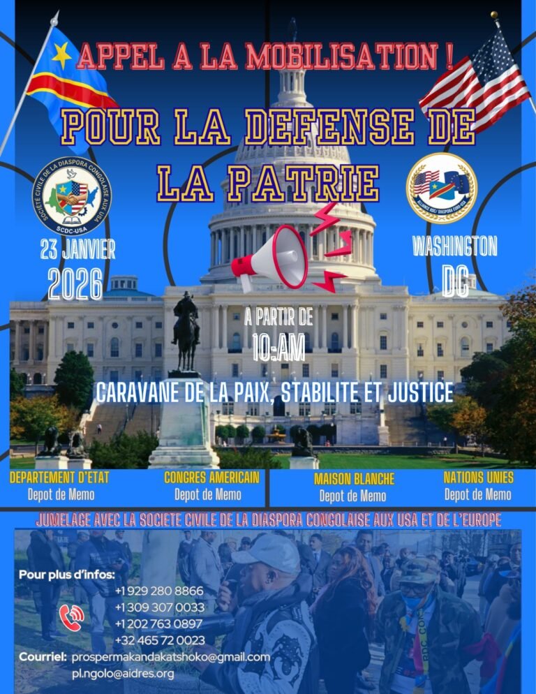 Le 23 janvier 2026, le cœur de la démocratie américaine battra au rythme de la République Démocratique du Congo. Sous le thème de la « Caravane de la Paix, Stabilité et Justice », la Société Civile de la Diaspora Congolaise…